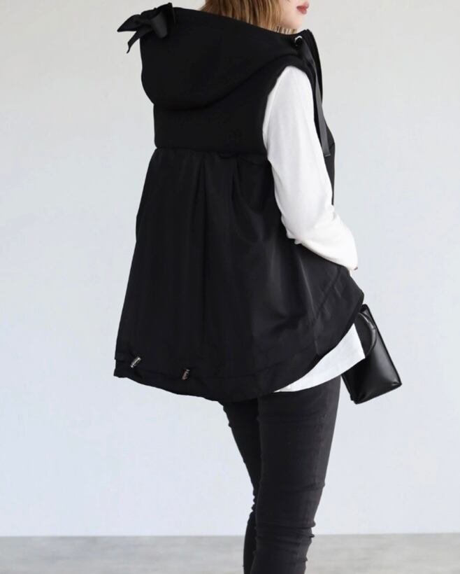 フード付き ブラック 後ろ絞り付き